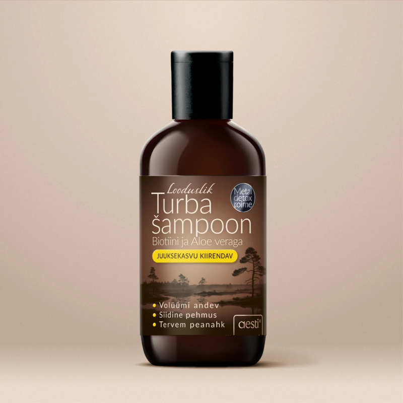Looduslik, turba- ja biotiiniga rikastatud juuksekasvu stimuleeriv šampoon annab Sulle tihedamad ja säravamad juuksed. Šampoon sisaldab terapeutilist turvast, mis on tuntud oma rikkalike bioaktiivsete ainete ja mineraalide poolest. Turvas puhastab peanahka ja toidab juuksejuuri sügavuti, kaitstes neid väliste keskkonna mõjude eest. Šampoonis sisalduv biotiin pidurdab juuste murdumist ja väljalangemist, kiirendades juuste kasvu, toites peanahka ja juuksejuuri. Koostises olev argaaniaõli imendub juustesse ühtlaselt, siludes katkiseid juukseotsi ja muutes juuksed peale pesu siidiselt pehmeks.